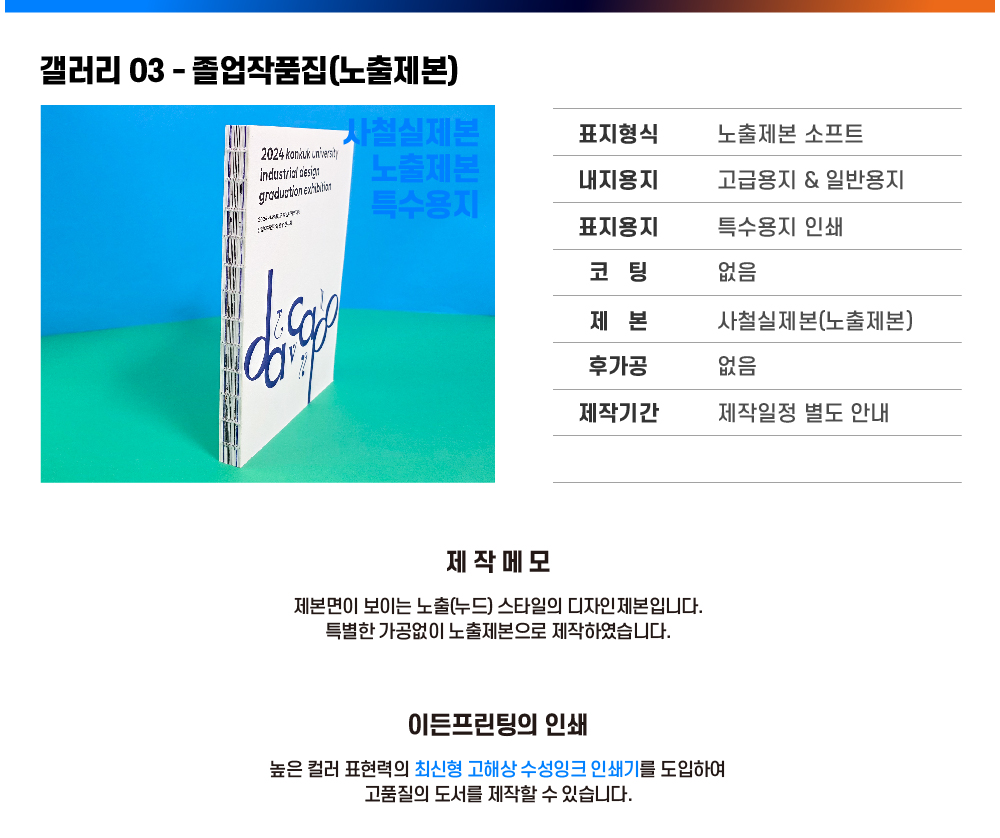 갤러리 03 - 졸업작품집 ㅣ 사철제본 ㅣ 특수지인쇄 표지