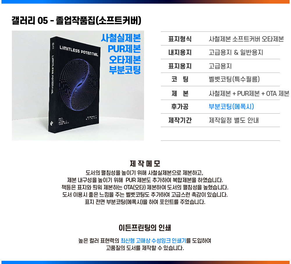 갤러리 05 졸업작품집 - 소프트커버 ㅣ 사철제본 ㅣ PUR제본 ㅣ 오타제본 ㅣ 부분코팅(에폭시)