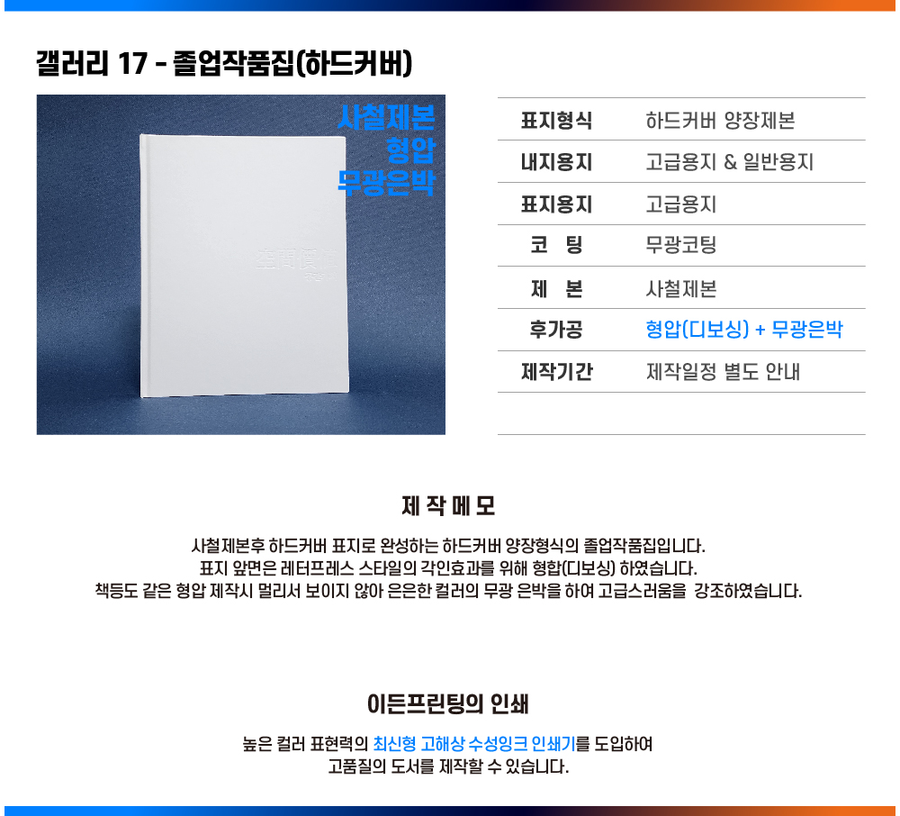 갤러리 17 졸업작품집 - PUR제본 ㅣ하드커버 ㅣ 형압(디보싱)