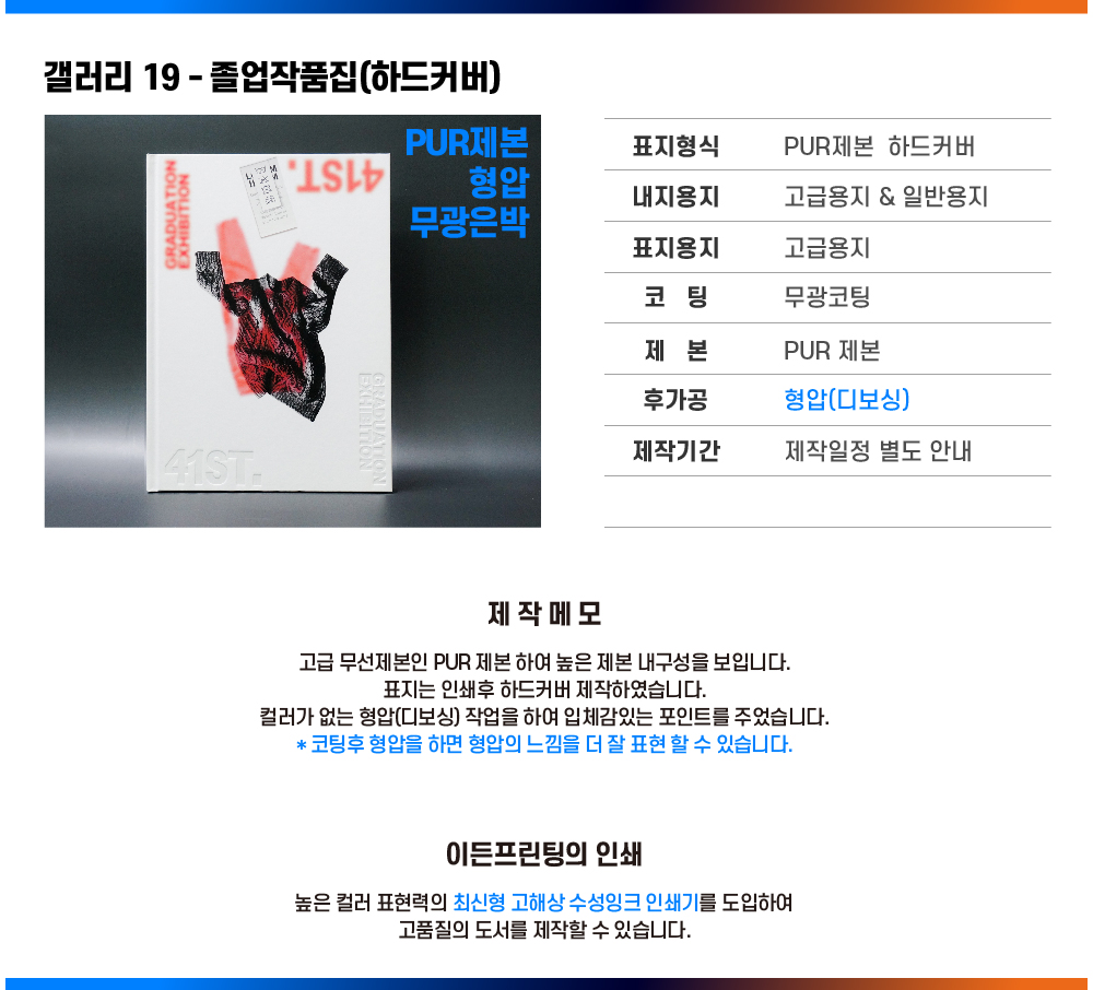 갤러리 19 졸업작품집 - PUR제본 ㅣ하드커버