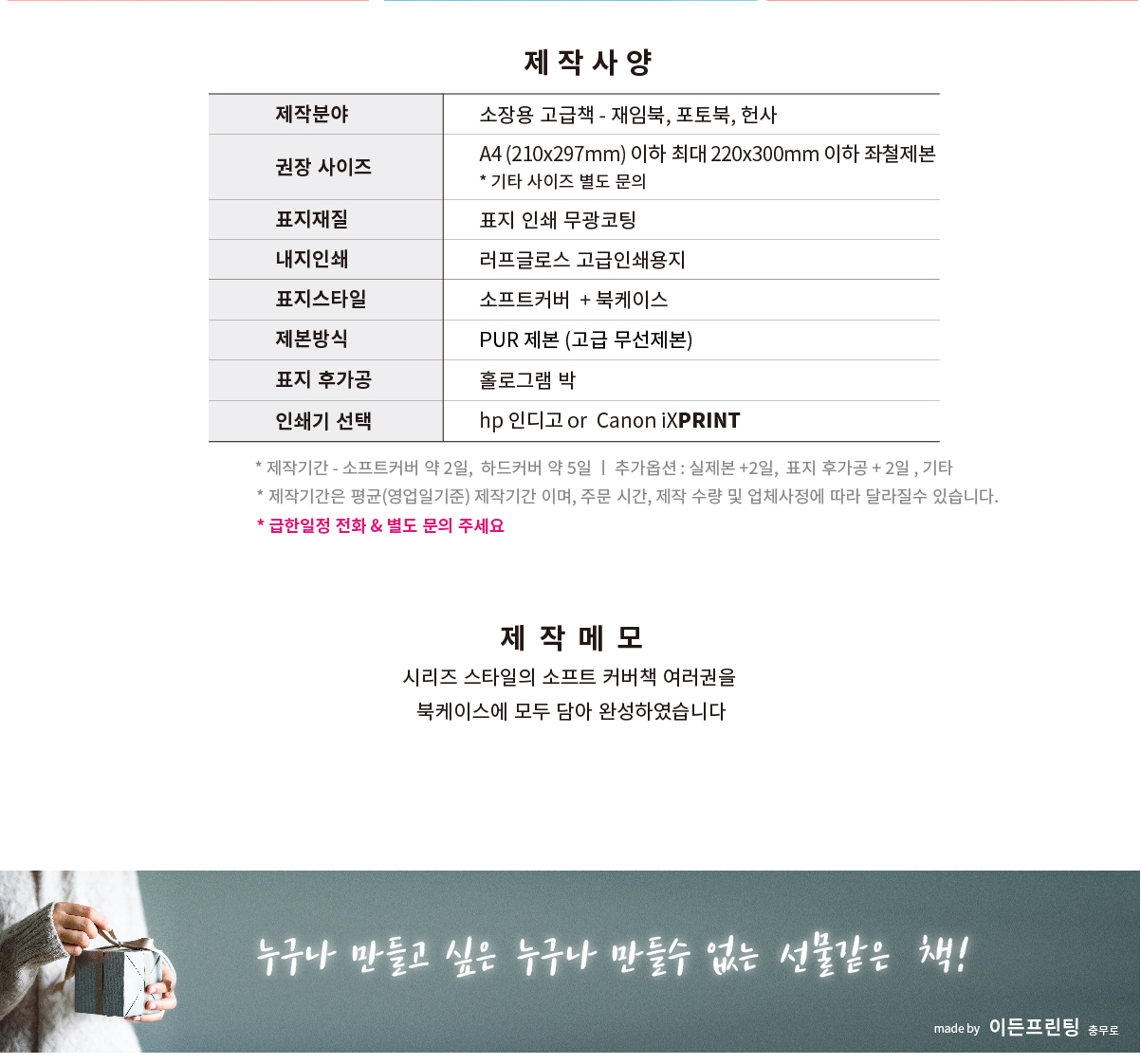 PUR제본, 무선제본, 하드케이스, 재임북, 소장책, 소장용책, 소량인쇄, 북케이스, 홀로그램박, 후가공, 하드 북케이스, 소프트커버,