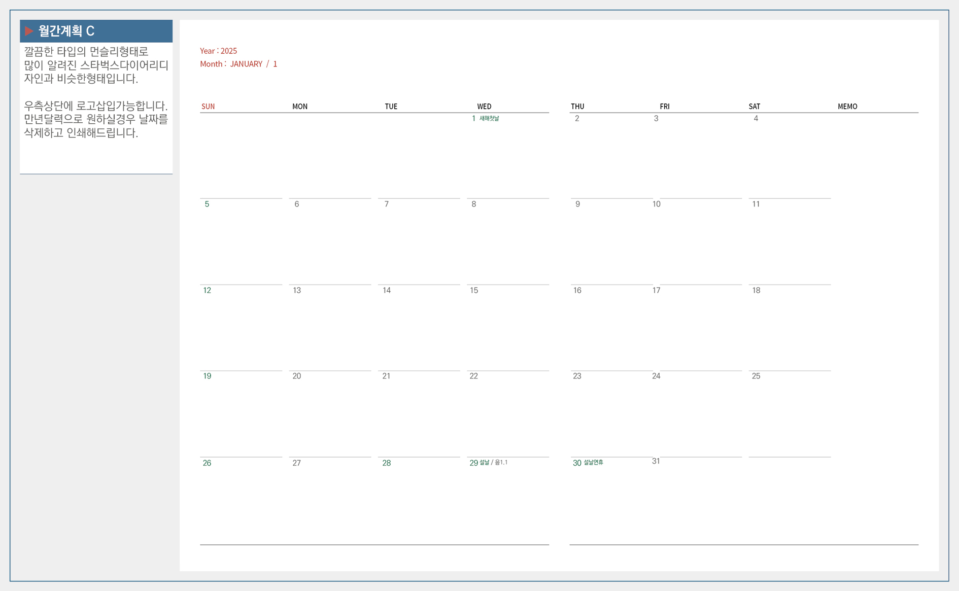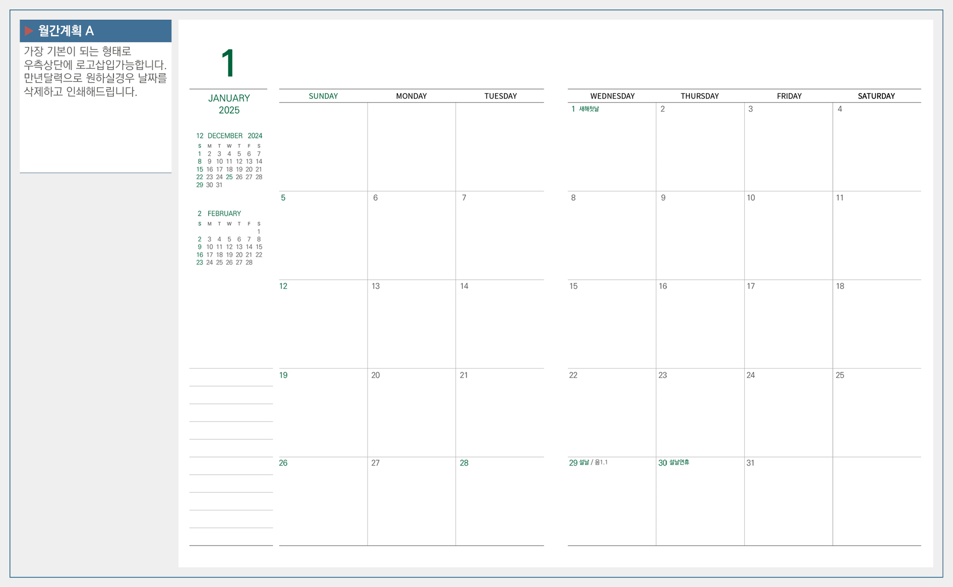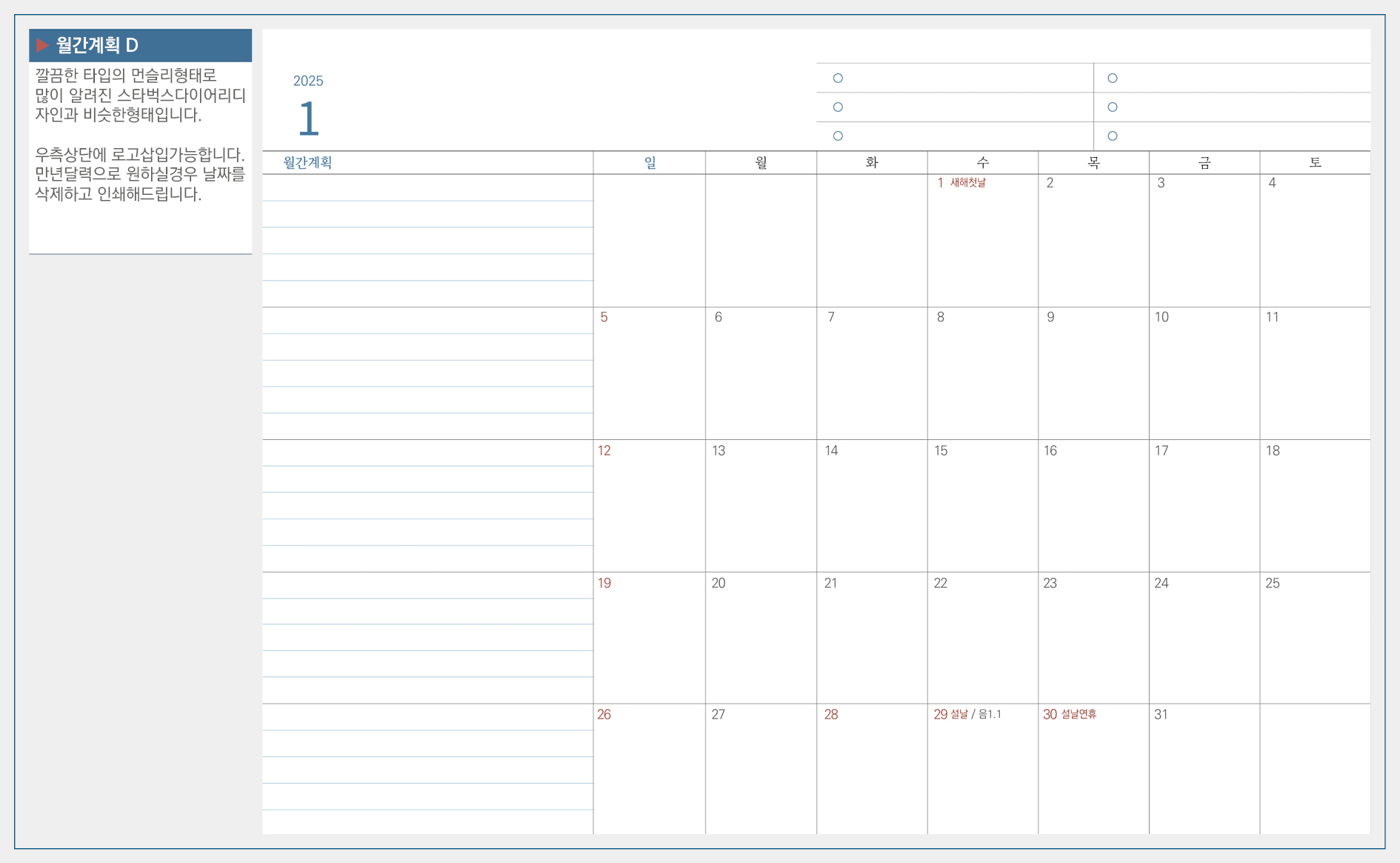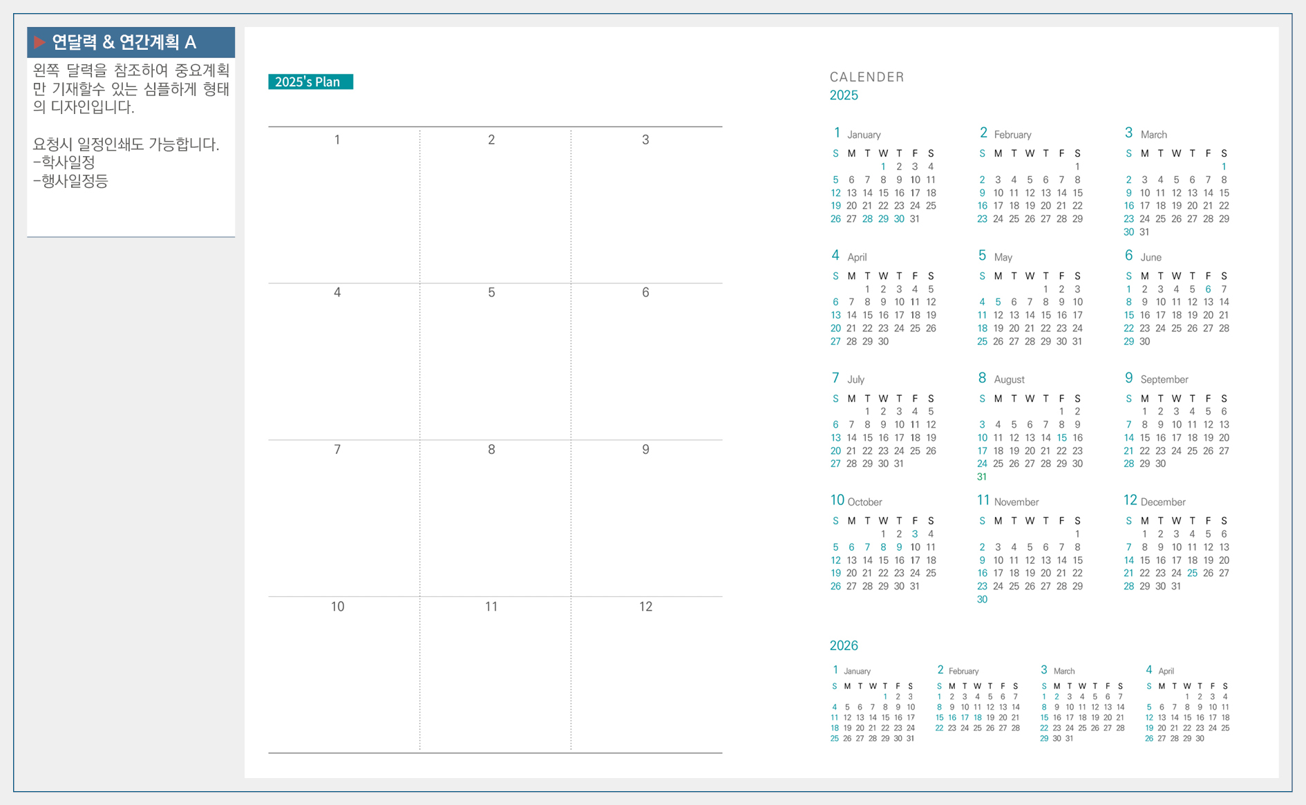 2025 다이어리 제안 3 -내지디자인1 (연,월간페이지)