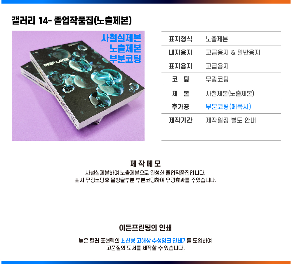 갤러리 13 졸업작품집 - 사철제본 ㅣ노출제본 ㅣ 부분코팅(에폭시)