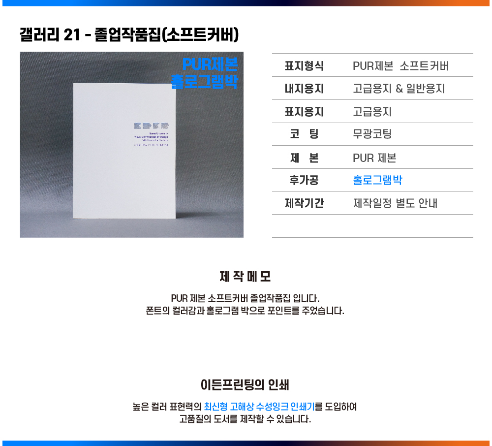 갤러리 21 졸업작품집 - PUR제본 ㅣ소프트커버 ㅣ 홀로그램박