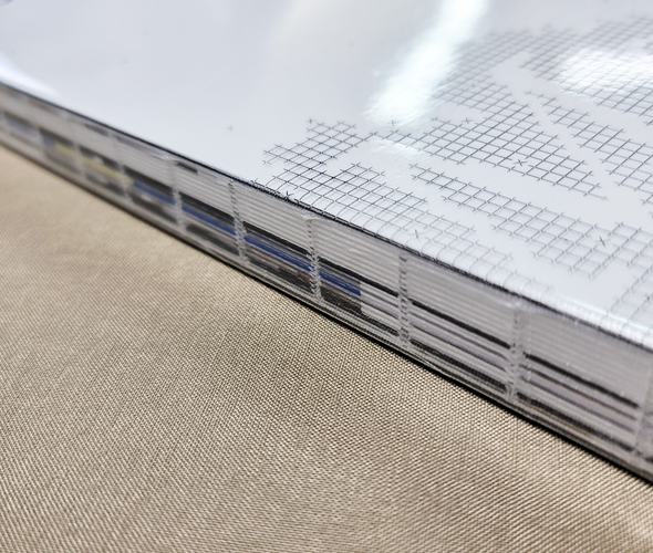 인쇄물을 실로 꿰메어 제본을 하는 제책 방식입니다. 실로 책을 제본하는 특성상 레이플렛(완전펼침) 제본이 가능하다는 장점을 가집니다.