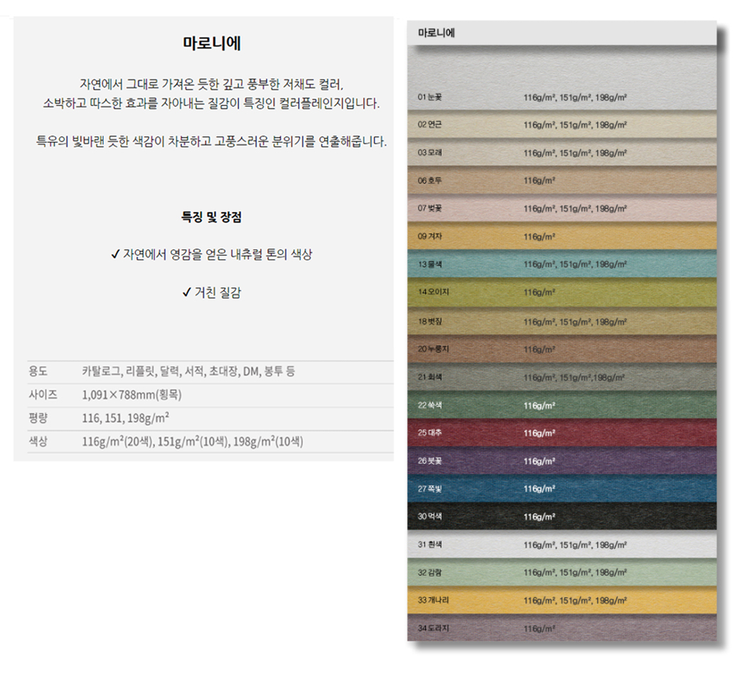 하드커버 싸바리용 또는 일반 소프트 커버용 종이 '마로니에'