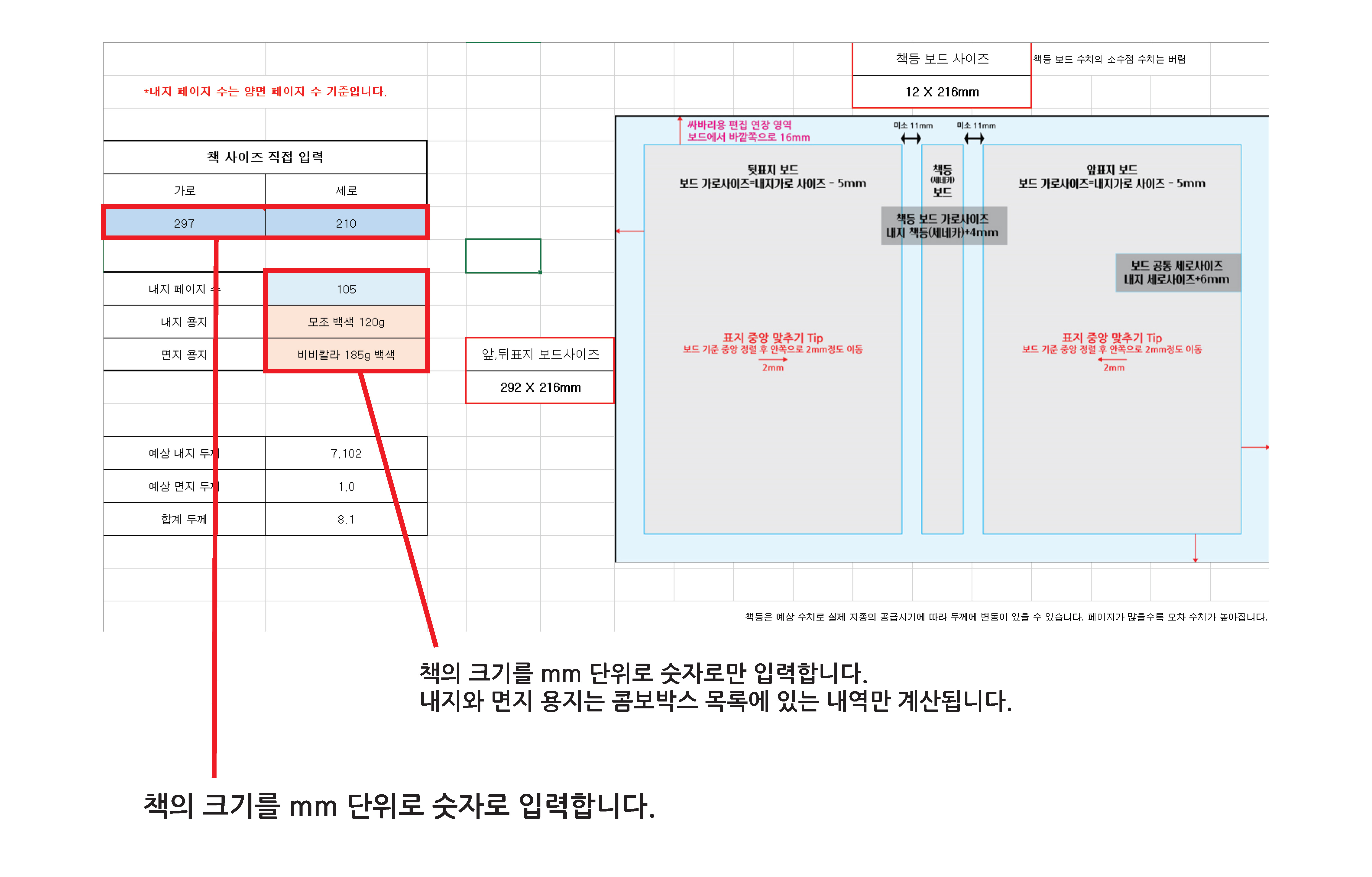 ** 하드커버 자동 두께 계산 및 가이드 다운로드 영상설명 최신판 ( version. 24.11)